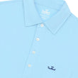- Upcycled performance polo; each shirt uses 15 bottles worth of plastic